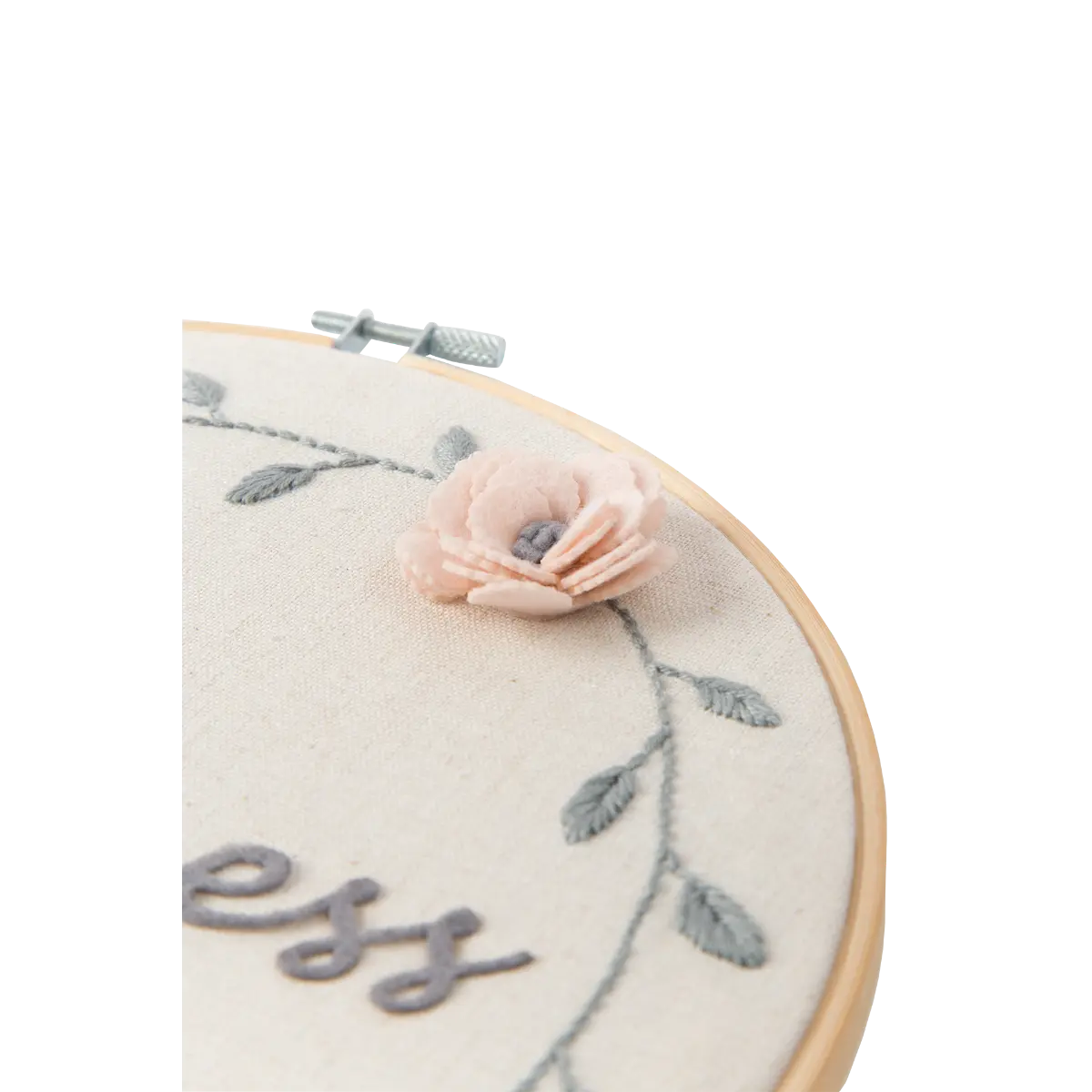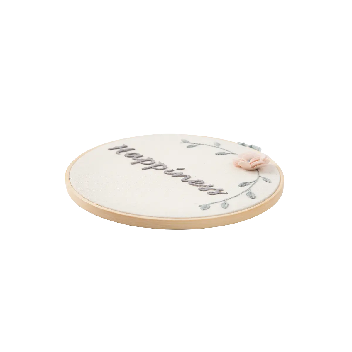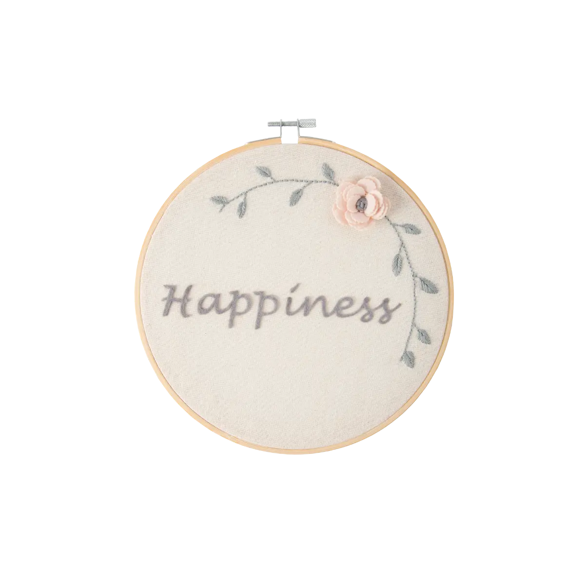 • Διακοσμητικό με την επιγραφή Happiness σε τελάρο κεντήματος 23 εκ.