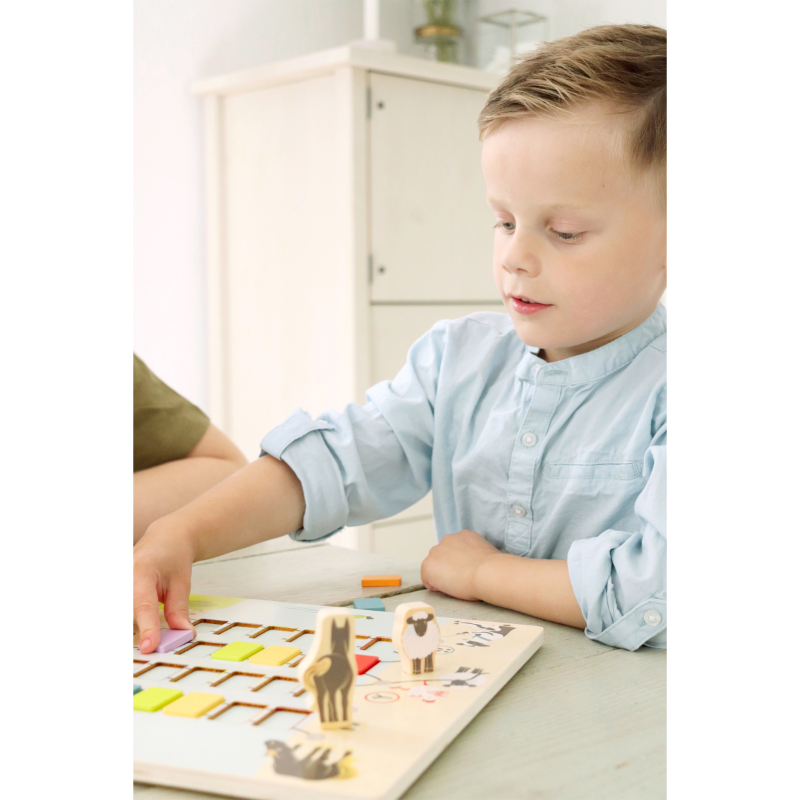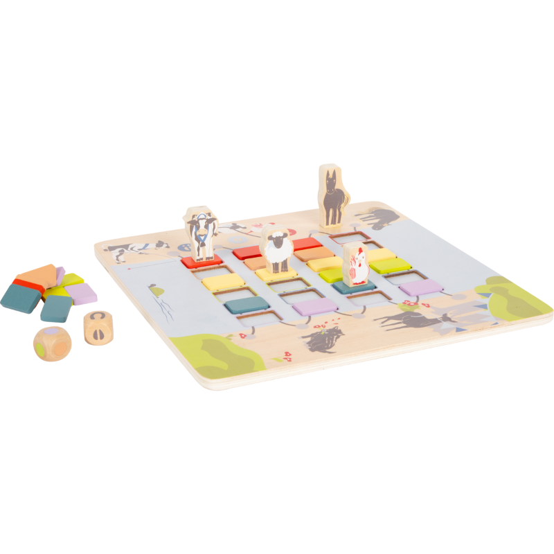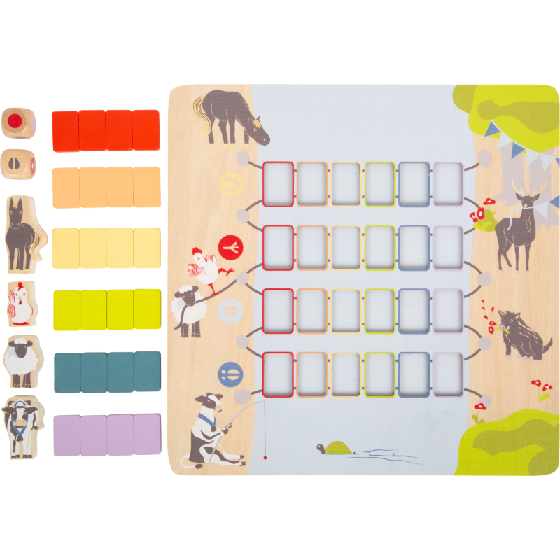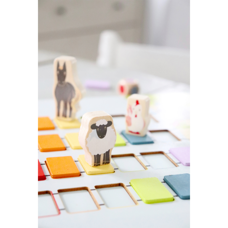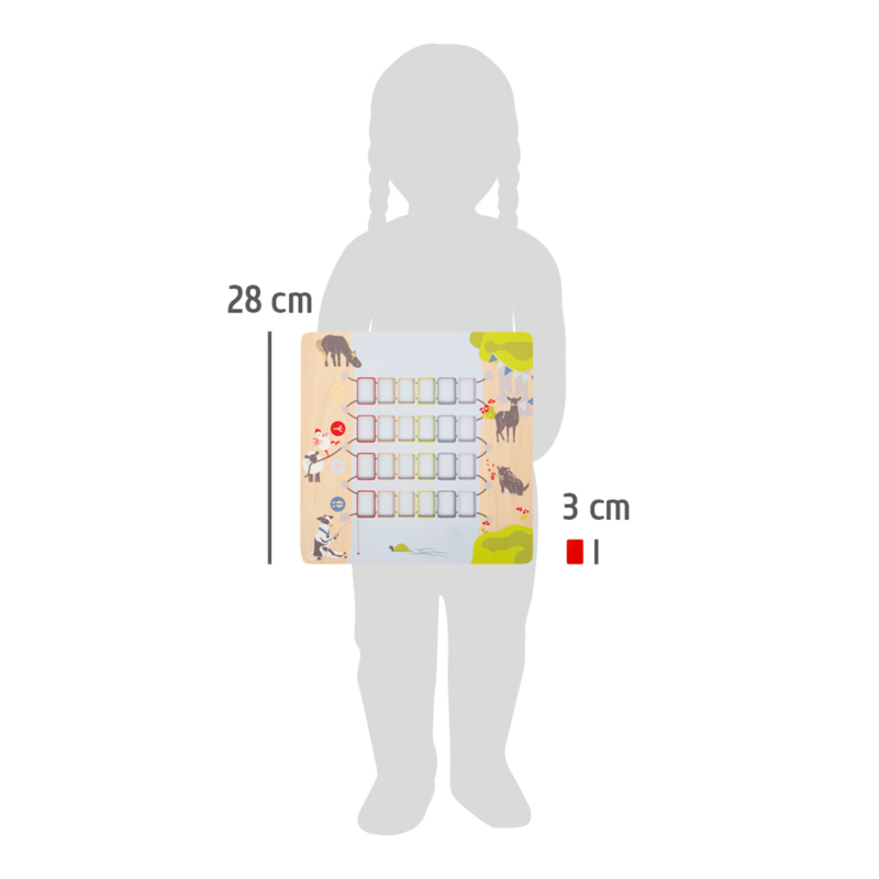 - Συνοδεύεται από ένα ζάρι με χρώματα και ένα ζάρι με ίχνη ζώων με σκοπό να μάθουν τα παιδιά και τα ίχνη που αφήνει το κάθε ζώο