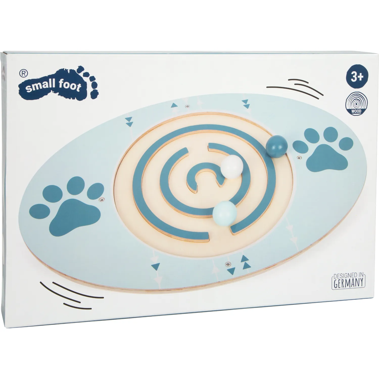 Εντατική προπόνηση ισορροπίας! Αυτή η ξύλινη σανίδα ισορροπίας είναι ένας διασκεδαστικός τρόπος για να εξασκήσετε την ισορροπία, τη στάση του σώματος και την ευκινησία. Το οβάλ σχήμα παρέχει μια ευρεία όρθια επιφάνεια και οι δύο πατούσες δείχνουν τη σωστή θέση του κάθε ποδιού. Γίνεται πιο δύσκολο όταν προστίθενται οι τρεις ξύλινες μπάλες και οδηγούνται στον λαβύρινθο με επιδέξιες αλλαγές βάρους. Αυτό απαιτεί σωματική ευκινησία και υπομονή!